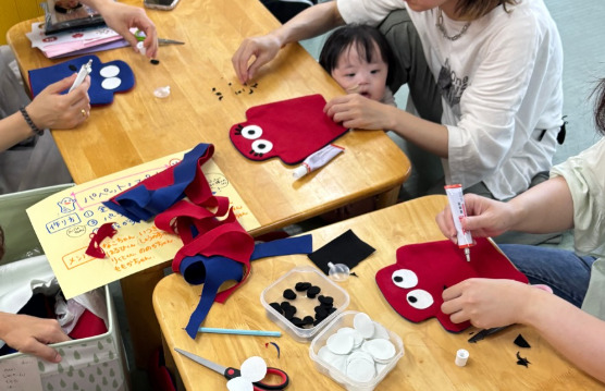 あっという間に、ママの愛情がたっぷり詰まったとてもかわいい支援グッズができあがりました!子供達も興味津々なご様子。